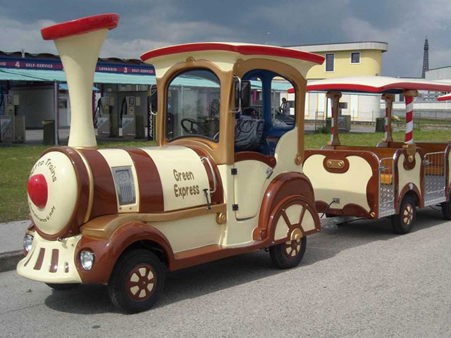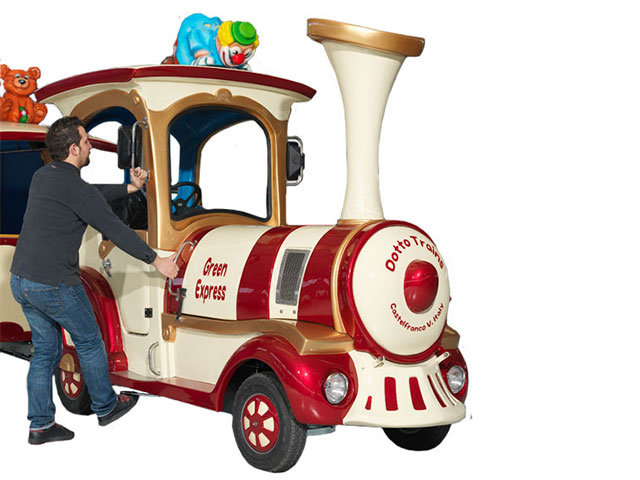 Con motore elettrico, è un'alternativa pulita e silenziosa particolarmente indicata per i luoghi coperti e affollati come outlet e centri commerciali. Compatto e capiente ha carrozze da 8 posti ed è dotato di impianto sonoro di serie.