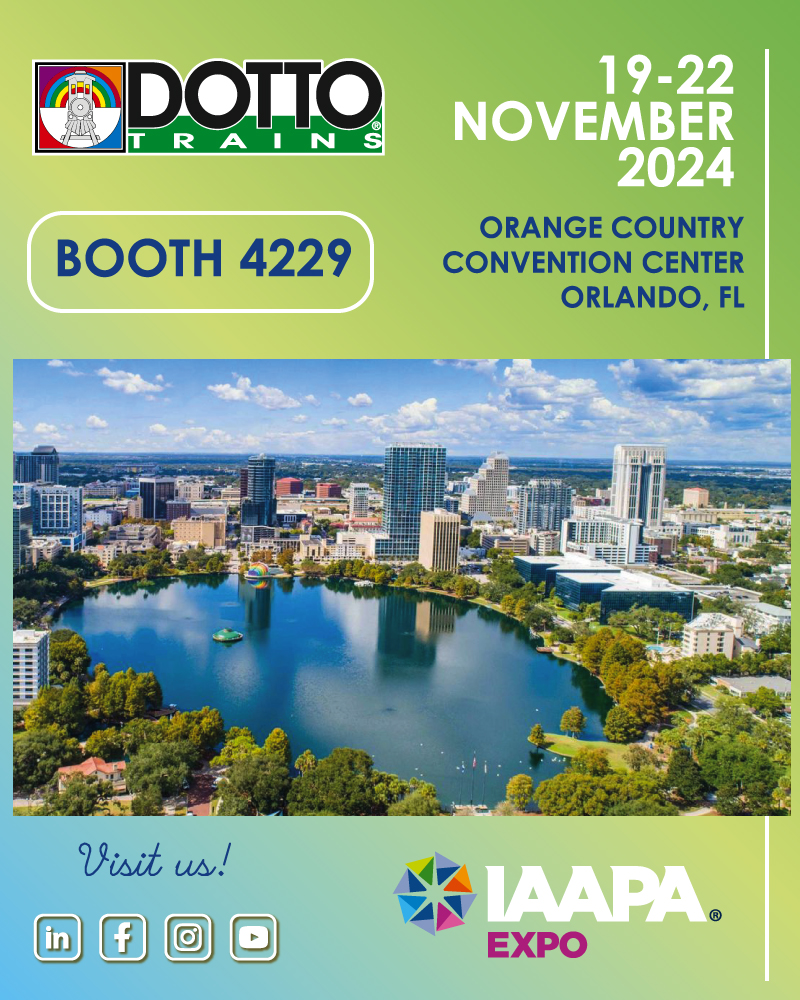 Dotto Trains è lieta di invitarLa alla IAAPA EXPO FLORIDA 2024 che si terrà in Orlando - Florida dal 19 al 22 Novembre 2024.