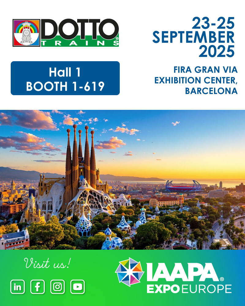 Dotto Trains è lieta di invitarLa alla IAAPA EXPO EUROPA 2025 che si terrà ad Barcellona dal 23 al 25 Settembre 2025.
